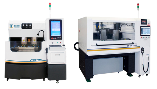 第三個(gè)展出的代表性機(jī)型——智能玻璃加工機(jī)系列JT-DG7030/DG7050,該系列產(chǎn)品主要專用于加工智能手機(jī)(蘋果、三星、華為、OPPO等智能手機(jī))、平板電腦、觸摸、液晶、太陽(yáng)能矽晶片、電子元件等產(chǎn)品的液晶屏玻璃的研磨等加工;主要性能特點(diǎn)是主軸轉(zhuǎn)速可達(dá)60000-100000rpm,基礎(chǔ)部件采用“濟(jì)南青”大理石,提高整機(jī)剛性與穩(wěn)定性;該機(jī)床可為藍(lán)寶石加工提供整體解決方案;其中,F(xiàn)MS柔性制造系統(tǒng)為高端客戶定制整條機(jī)械手自動(dòng)化生產(chǎn)線。