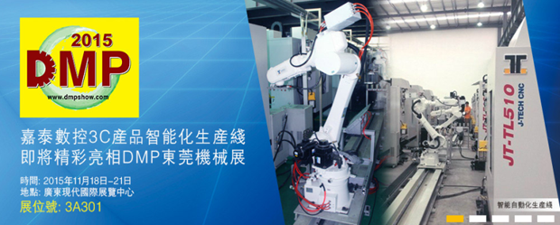 第十七屆東莞國(guó)際模具、金屬加工、橡塑膠及包裝展(以下簡(jiǎn)稱“DMP東莞機(jī)械展”)將于2015年11月18日至21日在廣東現(xiàn)代國(guó)際展覽中心舉行。DMP東莞機(jī)械展已成為機(jī)床行業(yè)下半年度重要的盛會(huì),該展覽會(huì)被譽(yù)為下半年度華南地區(qū)的一次重大饕餮盛會(huì),輻射以廣東、深圳為主的珠三角地區(qū)以及周邊廣西、湖南等多個(gè)省份,獲得國(guó)內(nèi)外參展商以及觀眾的一致好評(píng),在廣深區(qū)域已成為一年當(dāng)中首屈一指的大型展會(huì)。 嘉泰數(shù)控致力于為客戶提供智能手機(jī)金屬殼、手機(jī)及平板電腦液晶玻璃鏡面等精密加工的整體解決方案。針對(duì)3C產(chǎn)業(yè)、電子通訊行業(yè)的智能化自動(dòng)生產(chǎn)線,即將亮相DMP東莞機(jī)械展。 嘉泰數(shù)控的智能自動(dòng)化生產(chǎn)線將在DMP東莞機(jī)械展期間,帶給你一個(gè)智能手機(jī)金屬殼、手機(jī)屏幕精密加工的神奇“智造”之旅!智能機(jī)器人配合自動(dòng)上下料,多工件同步試加工,全面詮釋嘉泰數(shù)控機(jī)床 的“高效率、高剛性、高精度、高穩(wěn)定性”品質(zhì)魅力。