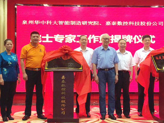 背景介紹:6月19日-21日,科技部在泉州市召開“數(shù)控一代”創(chuàng)新應(yīng)用工程現(xiàn)場工作會議,會議將落實(shí)全國科技創(chuàng)新大會精神,推進(jìn)科技成果應(yīng)用于轉(zhuǎn)化,總結(jié)交流“數(shù)控一代”創(chuàng)新應(yīng)用工程工作經(jīng)驗(yàn),部署“十三五”重點(diǎn)工作,為泉州制造業(yè)轉(zhuǎn)型升級提供有力的支撐。會議期間,先后前往“泉州制造2025”展示中心、洛江區(qū)智能裝備產(chǎn)業(yè)園、領(lǐng)SHOW天地三個考察點(diǎn)展開實(shí)地走訪。嘉泰數(shù)控作為泉州市“數(shù)控一代”示范龍頭企業(yè),在洛江區(qū)智能裝備產(chǎn)業(yè)園的成果匯報現(xiàn)場交出靚麗成績單,獲得高度肯定與點(diǎn)贊。前序:在泉州市“數(shù)控一代”創(chuàng)新應(yīng)用工程現(xiàn)場工作會議期間,全國政協(xié)副主席、中國科學(xué)技術(shù)協(xié)會主席、國家科技部部長萬鋼和中國工程院院長周濟(jì)率全國眾多領(lǐng)導(dǎo)專家考察嘉泰數(shù)控實(shí)施的“智能工廠示范工程項(xiàng)目”建設(shè)等成果。同期,中國工程院院長周濟(jì)、中國工程院院士段正澄為嘉泰數(shù)控“院士專家工作站”揭牌。 ![]() 圖一:泉州市“數(shù)控一代”匯報現(xiàn)場 嘉泰數(shù)控“院士專家工作站”正式揭牌 2016年6月19日,在“泉州制造2025”示范項(xiàng)目實(shí)施情況座談會上,中國工程院院長周濟(jì)、中國工程院院士段正澄與泉州市委書記鄭新聰、市長康濤一起,為嘉泰數(shù)控科技股份公司“院士專家工作站”揭牌。 “院士專家工作站”的建立讓中國工程院和嘉泰數(shù)控的關(guān)系更為緊密,段院士在揭牌儀式上用“親人”來形容嘉泰數(shù)控。會上,周院長和段院士均表示,今后雙方的合作必須實(shí)實(shí)在在、扎扎實(shí)實(shí),從企業(yè)現(xiàn)狀出發(fā),以發(fā)展為能夠支持國家發(fā)展需求的機(jī)床制造高端企業(yè)為前進(jìn)方向。嘉泰數(shù)控董事長蘇亞帥在會上表示:“院士專家工作站”的建立,將給我們嘉泰帶來深厚的技術(shù)底蘊(yùn),帶來更多的技術(shù)人才,必將為公司在新產(chǎn)品研發(fā)、重大項(xiàng)目建設(shè)等方面的發(fā)展注入新的活力。