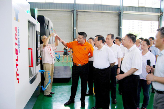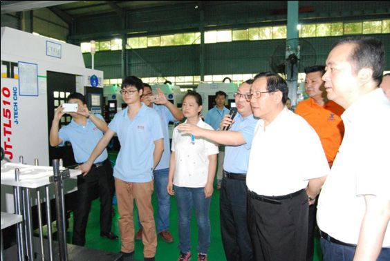 萬鋼部長考察嘉泰數(shù)控實(shí)施的“智能工廠示范工程項(xiàng)目”建設(shè)成果2016年6月20日,全國政協(xié)副主席、中國科協(xié)主席、國家科技部部長萬鋼和中國工程院院長周濟(jì)等來自全國各地的眾多領(lǐng)導(dǎo)專家一行,在福建省常務(wù)副省長張志南、泉州市委書記鄭新聰、市長康濤等省市區(qū)領(lǐng)導(dǎo)的陪同下,蒞臨泉州市“數(shù)控一代”匯報現(xiàn)場。在洛江區(qū)智能裝備產(chǎn)業(yè)園的匯報現(xiàn)場,嘉泰數(shù)控董事長蘇亞帥就由嘉泰數(shù)控實(shí)施的“3C產(chǎn)業(yè)數(shù)字化智能工廠示范項(xiàng)目”作技術(shù)講解,以及匯報自主研發(fā)的“門型五軸立式加工中心JT-GL8-V”、高速鉆攻中心JT-TL510A以及3C產(chǎn)業(yè)智能手機(jī)金屬外殼加工自動化生產(chǎn)線等最新成果。