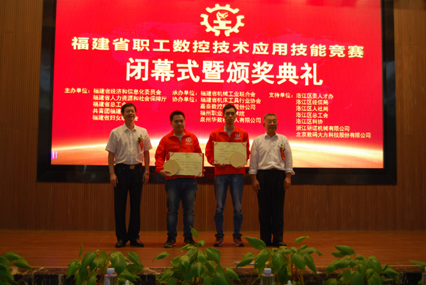 競賽組委會領(lǐng)導(dǎo)為獲獎選手頒發(fā)“福建經(jīng)信系統(tǒng)數(shù)控應(yīng)用技術(shù)能手”