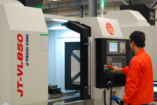 其中嘉泰數(shù)控高速立式加工中心JT-VL850擁有48m/min快速定位,軸最大加速度1.0G,有效縮短加工定位時間,提高加工效率;特別是配置了10000rpm的直結(jié)式主軸,確保高速切削的穩(wěn)定性且無皮帶之動力損耗;最高剛性攻絲轉(zhuǎn)速:5000rpm,剛性攻絲倍速回退,有效提高剛性攻絲速度。該加工中心廣泛運用于汽車零部件、摩托車/電動車配件等產(chǎn)品的有色金屬加工需要,以及模具(如塑料模具、橡膠模具、金屬模具等)、五金加工、工程機械、化工機械及配件的加工、鋁及鋁型材加工、適配器、油泵、攝影器材、其他機械行業(yè)零部件的加工主機等(如切割機、造紙機、紡織機、CNC等),確保高速、高精度、高穩(wěn)定性的加工要求。